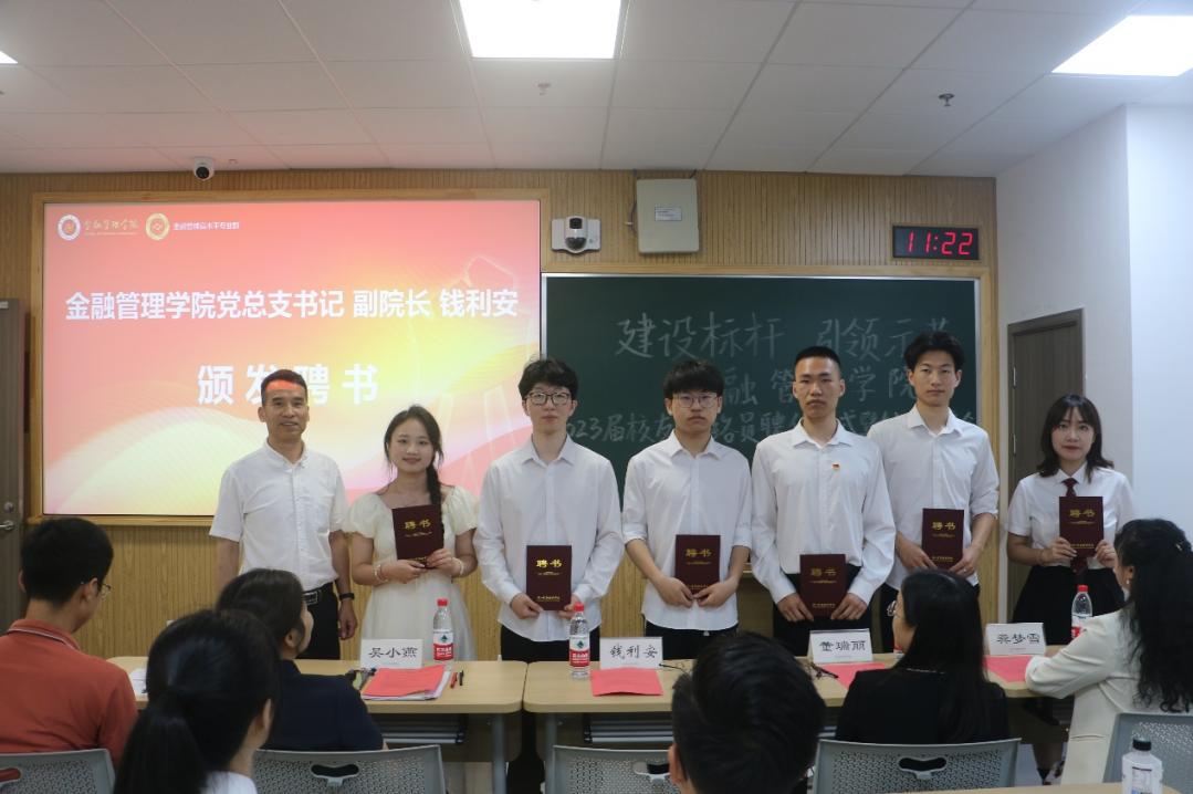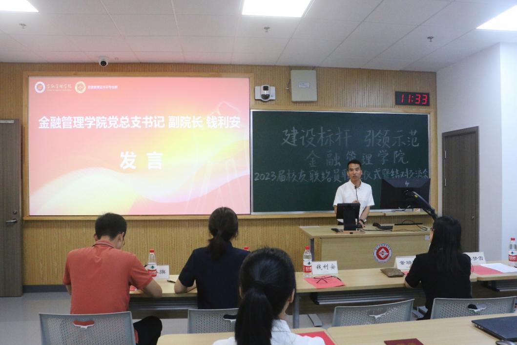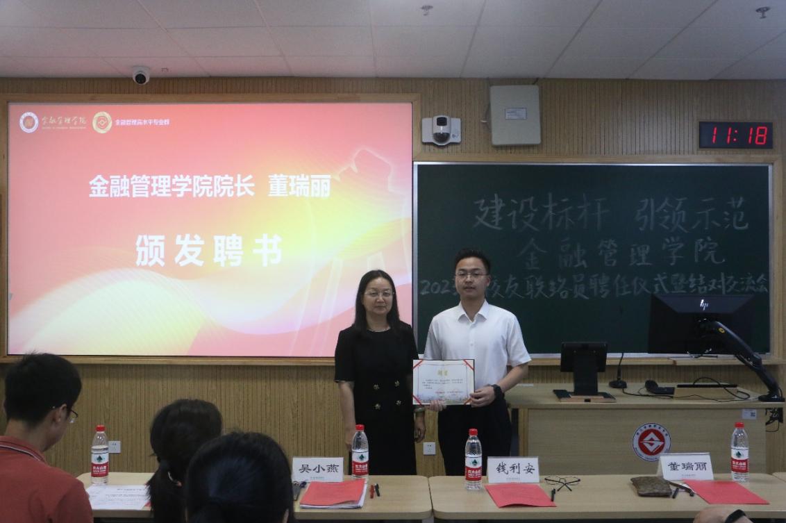 金融管理学院党总支书记、副院长钱利安为班级校友联络员颁发聘书