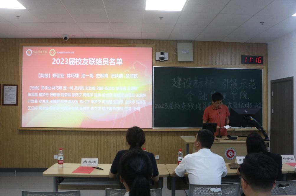金融管理学院党总支副书记吴小燕给班级校友联络员颁发聘书