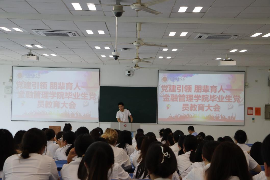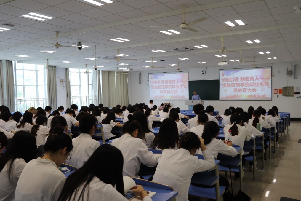 6月8日下午,金融管理学院在8219教室举行金融管理学院2023届毕业生党员教育大会。金融管理学院党总支书记、副院长钱利安,学院学工办副主任宋春旗,学院专职组织员彭采婧及学院2023届全体毕业生党员参加此次大会。会议由宋春旗主持。