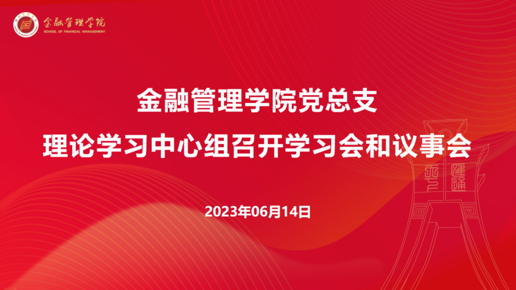 6月14日下午,金融管理学院党总支理论学习中心组在线上召开学习和议事会议。此次会议由金融管理学院党总支书记钱利安主持,学习习近平总书记著作《论科技自立自强》中的相关内容和习近平总书记对金融工作的指导讲话、围绕学院中心工作进行部署落实,金融管理学院党总支理论学习中心组成员参会。