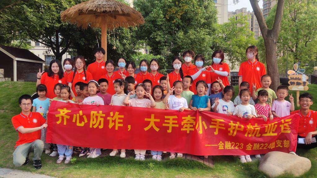 在6月14日下午,金融管理学院金融223、金融224团支部与凌云幼儿园进行了一场愉快的合作,同小朋友们开展了“齐心防诈,大手牵小手护航亚运”的志愿服务活动。本次活动进一步提升小朋友们的安全防骗意识,通过一系列活动方案,和小朋友们进行相互的了解并且在活动实践中让小朋友了解了诈骗知识,端午节文化习俗,护航亚运。