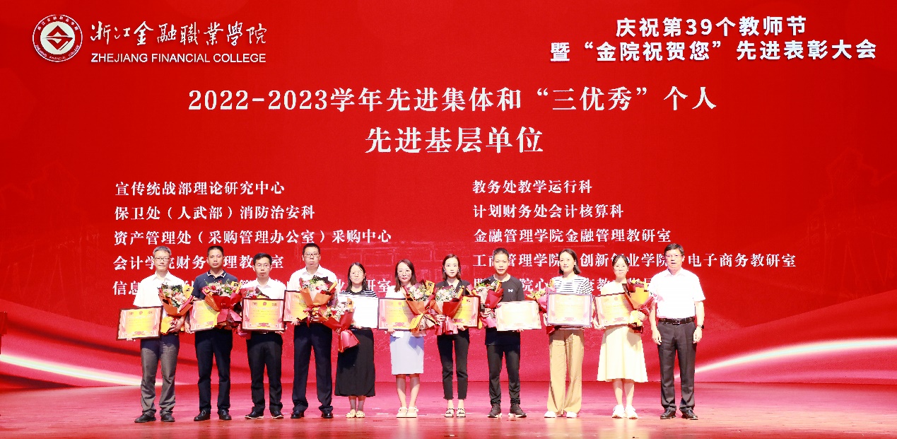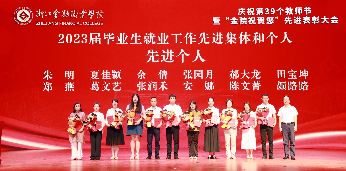 金融管理学院获浙江省“三育人”岗位建功活动先进集体、学校2023届毕业生就业工作先进集体荣誉称号。