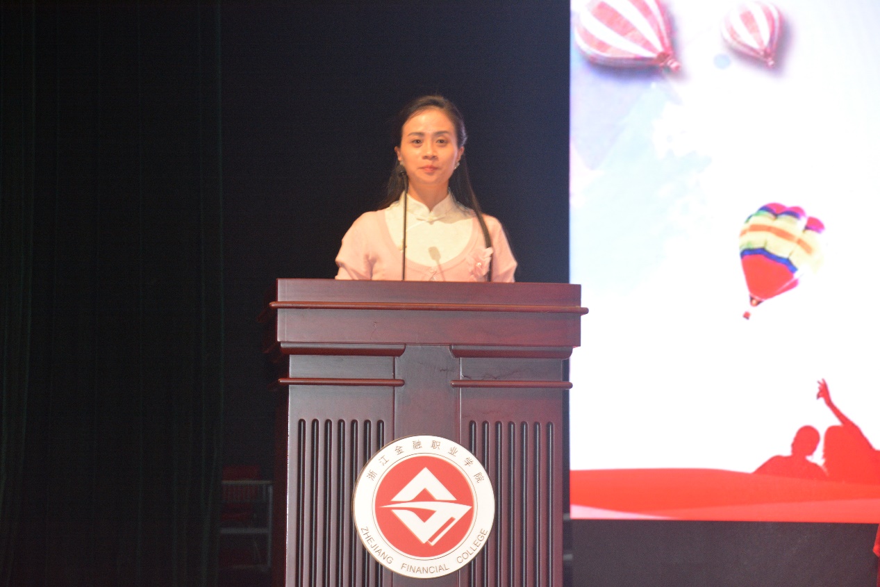 随后,校友代表章丹丹回顾自身在校经历,从自身职场成长出发展开分享。她感谢自己当初选择浙江金融职业学院金融管理学院;感谢学院的人才培养方式成就了现在的自己;感谢学院老师的谆谆教导与悉心栽培。她表示,在工作期间时刻关注母校发展并对母校取得的成就倍感荣幸,她希望全体新生在大学生活中积极实践,锤炼自身意志,不断拼搏进取,为传承学校口碑而不断努力。