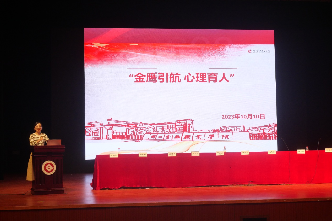 第三阶段,石书敏以“金鹰引航,心理育人”为主题展开。她强调大学生心理健康问题呈现逐年递增的趋势,希望同学们能够关注自己的心理状态,并利用好校内的心理健康教育资源,可以向专业人士寻求帮助,同时积极参加心理中心和学院举办的相关活动。