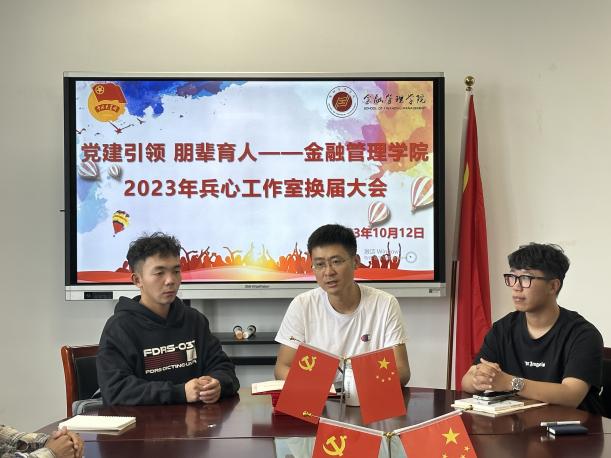 2023年10月12日下午,浙江金融职业学院金融管理学院兵心工作室换届大会在泰隆大厦顺利举行。出席本次活动的有学院学工办主任、团总支书记宋春旗老师,上届负责人代表,本届负责人,以及新一届全体成员。