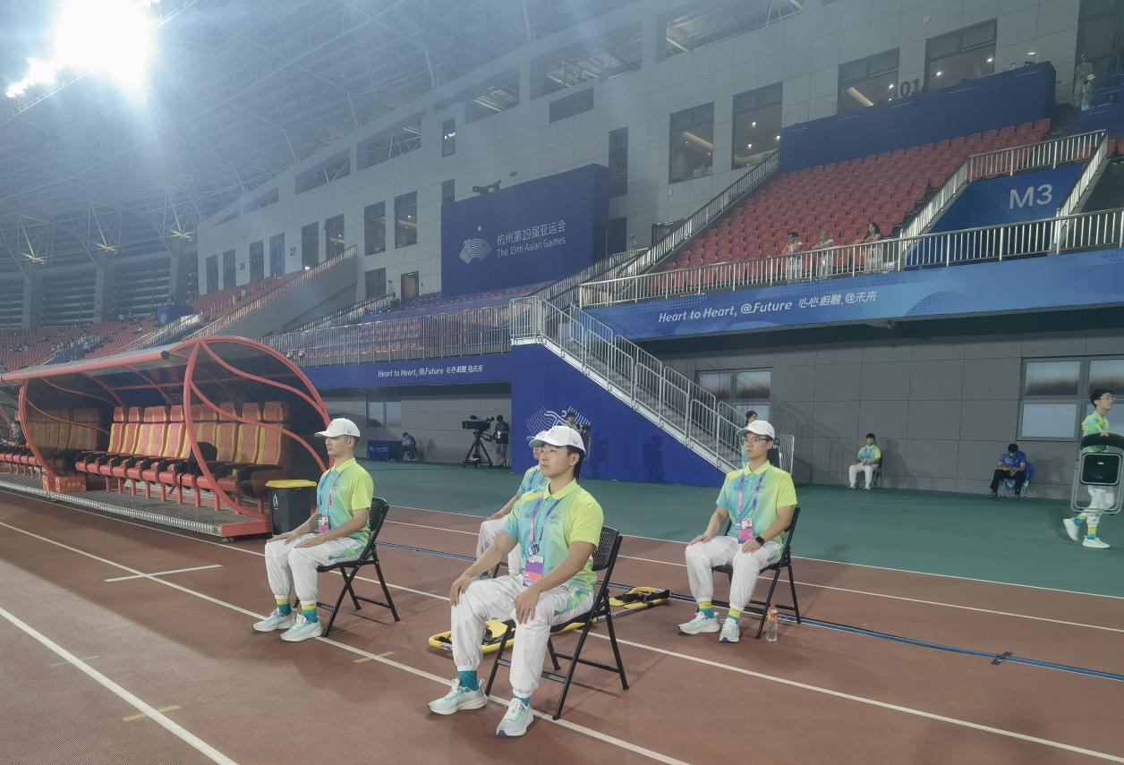 作为医疗协转志愿者,他从早上7点就到场馆待命,直到全天比赛结束,有时离开场馆已是深夜。在比赛阶段,也不妨遇到恶劣天气,但是他依然能全神贯注地紧盯赛场情况,有运动员受伤倒地,他迅速反应,根据主裁判和医生的指挥,协助救治、转运伤员。