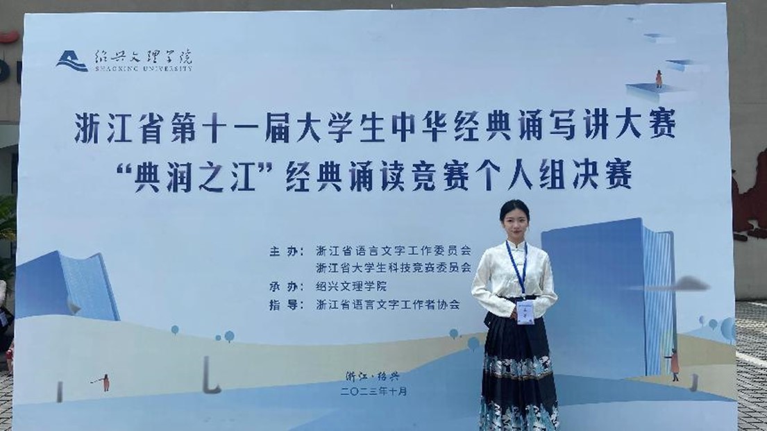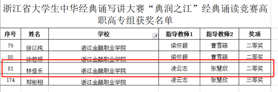 浙江省中华经典诵读写讲大赛组委会关于举办浙江省第十一届大学生中华经典诵写讲大赛 “典润之江”经典诵读竞赛也落下帷幕,我院金融214林佳乐获得高职高专组二等奖!