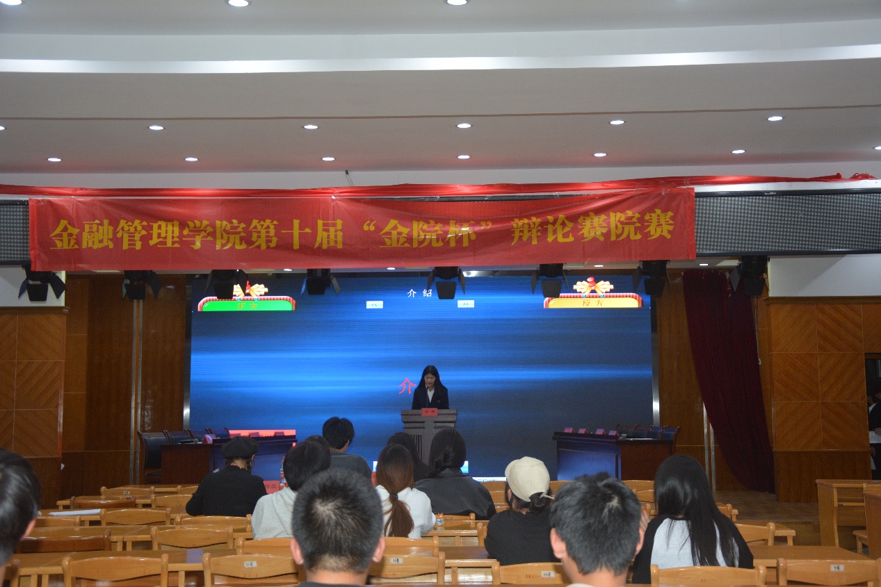 为了丰富同学们的课余文化生活,培养团队协作意识,提高逻辑应变能力和语言表达能力,金融管理学院于10月20日晚在诚信讲学堂举办金融管理学院第十届“金院杯”辩论赛学院决赛。参加本次辩论赛的为金融管理学院辩论队23级新生辩手、辩论队工作人员和对此项活动感兴趣的各班同学。本次比赛由金融管理学院辩论队21级成员陈姝馨、吴伊杰、邵舒蕊担任评委。本次比赛由国金231蒋承宸,金融235唐静怡主持。