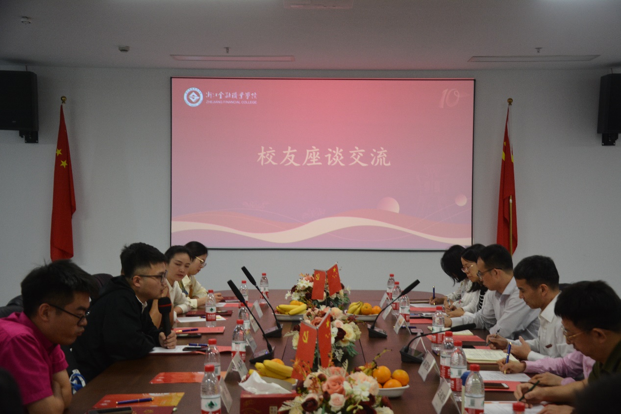 丹桂飘香迎嘉宾,秋菊溢金慰亲朋。秋意正浓之际,我们迎来了浙江金融职业学院四十八周岁的生日。为加强校友与母校之间的联系,更好发挥校友育人作用,帮助在校学子树立远大理想,点燃拼搏奋斗的激情,培养更多优秀现代金融人才,加快学校创建成为中国特色高水平职业大学,金融管理学院校友会诚挚邀请社会各界优秀校友返校,于11月4日上午在泰隆718会议室举办金融管理学院第七届校友论坛。参会人员有金融管理学院党总支书记、副院长钱利安,副院长凌海波,学院各教研室主任,学院院办、学工办教师,学院校友代表以及在校学生代表。论坛由钱利安主持。
