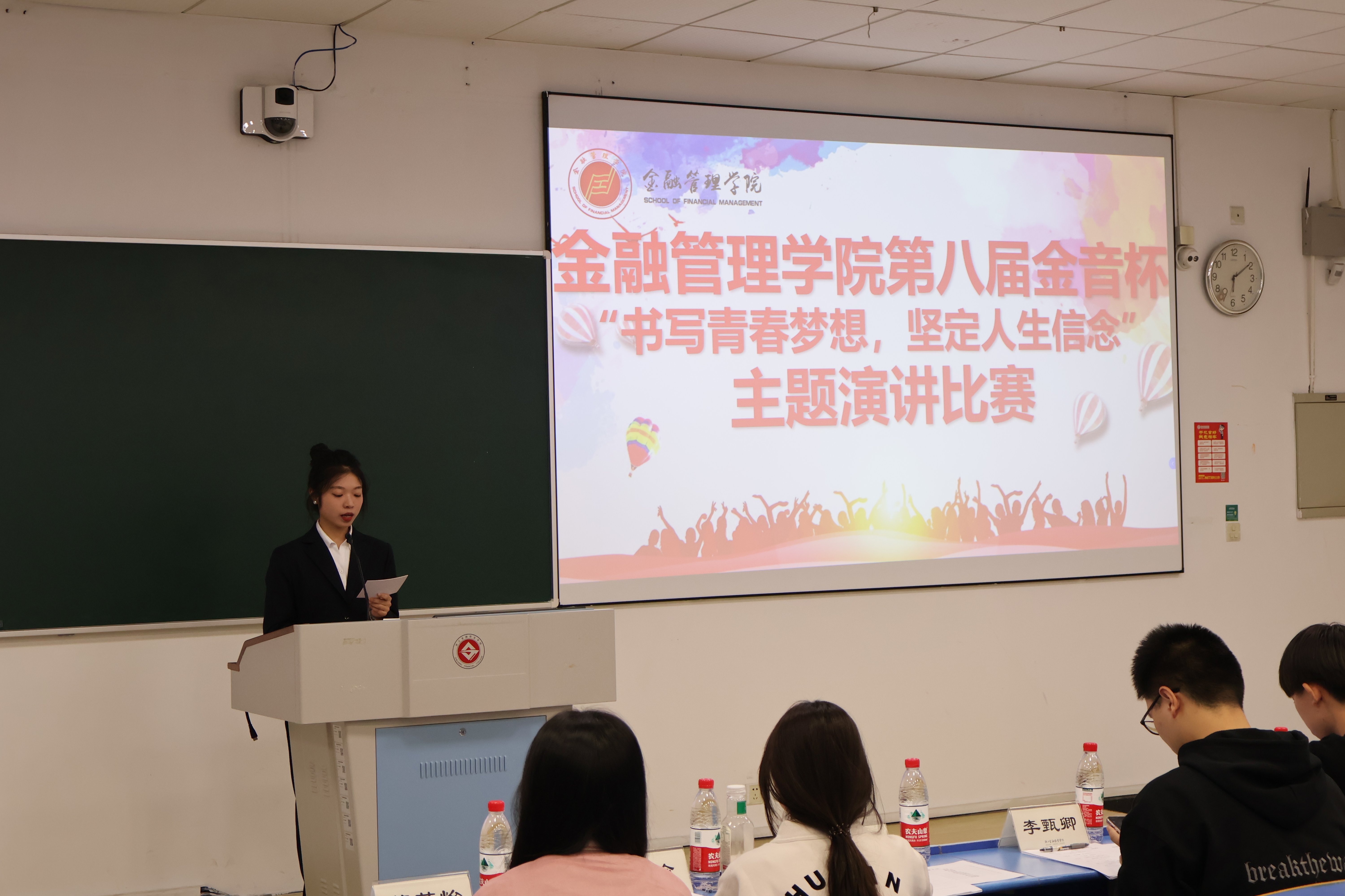 为展现当代大学生蓬勃向上的精神面貌,构筑新时代青年学子学业梦、青春梦,培育德智体体美劳均衡发展的金融学子,11月6日金融管理学院以:“书写青春梦想 坚定人生信念”为题,成功举办第八届“金音杯”主题朗诵大赛决赛。出席本次比赛的评委分别是金融管理学院学工办副主任、团总支副书记夏佳颖,浙江省中华诗词通读写大赛二等奖得主林佳乐,学院团总支副书记、校金音杯一等奖得主钱瑜,金融语言艺术团负责人、校金音杯一等奖得主萧苏怡,金融语言艺术团负责人李甄卿以及其他对本次比赛感兴趣金融学子等。本次比赛由舒珞培主持。