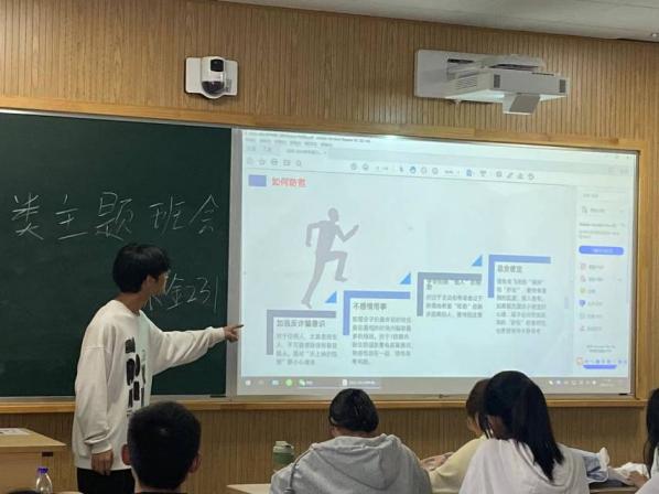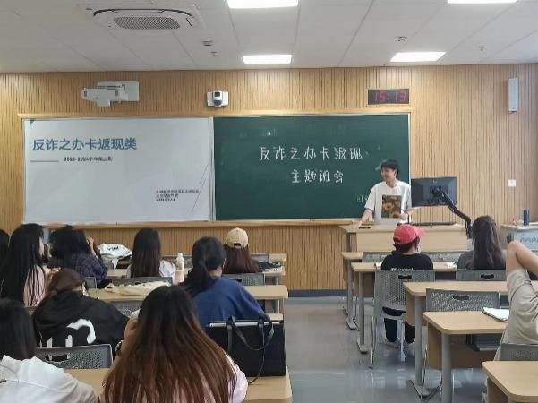 各班安全委员们积极响应号召,在本班开展安全防诈主题班会。通过反诈骗PPT和安全委员讲解案例的方式,有效的向班级同学展示返现这一诈骗方式,使得同学们对返现诈骗具有基本的了解,提高同学们对于返现类诈骗的防范意识,使得同学们能够更加理性、清醒地看待各种优惠信息,提高同学们的警惕性,增强自我防范意识,降低在生活中被诈骗的风险。