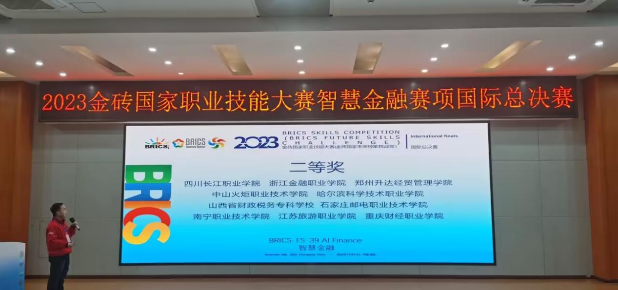近日,2023年金砖国家职业技能大赛智慧金融赛项国际总决赛在重庆商务职业技术学院举行。该赛项由南非高等教育与培训部、金砖国家工商理事会、南非豪登省政府主办,金砖国家工商理事会技能发展工作组、南非高等教育与培训部媒体信息通信技术署承办,金砖国家工商理事会(中方)技能发展工作组、一带一路暨金砖国家技能发展国际联盟、教育部中外人才交流中心组织协办,中联集团教育科技有限公司、中联国际工程管理有限公司提供技术支持。来自全国各省、自治区、直辖市的37支参赛队伍参加此次比赛。经过三场共六个小时紧张激烈的角逐,我校金融管理学院学子农金212班鲁佳同学在金融管理学院方宜霞老师的指导下,获得第七名,国赛二等奖的好成绩。