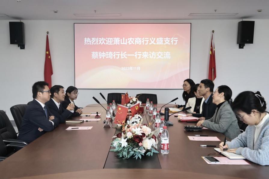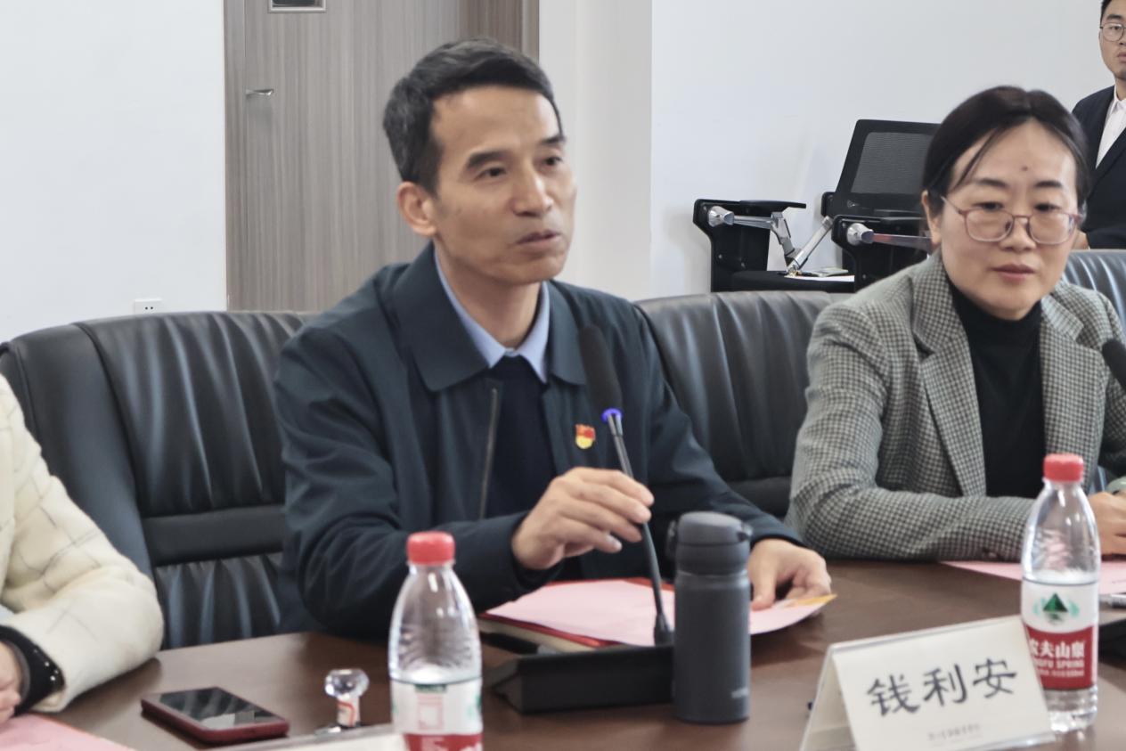 首先,钱利安对萧山农商行义盛支行蔡钟琦行长一行的到来表示热烈欢迎和衷心感谢。随后,他围绕学校建设、学院发展、党建品牌、人才培养等方面进行介绍。他表示,学校目前处于创建高水平职业大学以及“双高校”建设验收的重要时期。加强党建引领,开展校企合作是提升学校办学水平的重要途径,通过邀请行业专家兼职授课、参与人才培养方案建设及开展大学生职场见习、实习等体验活动,有利于学院培养更高质量的金融专业人才。他认为,此次校银党建共建有助于金融管理学院与中共浙江萧山农村商业银行股份有限公司义盛支行进一步深化产教融合与校企合作,创新办学模式,优化人才培养,有利于发挥校企各自优势,助推学校和企业共同高质量发展。