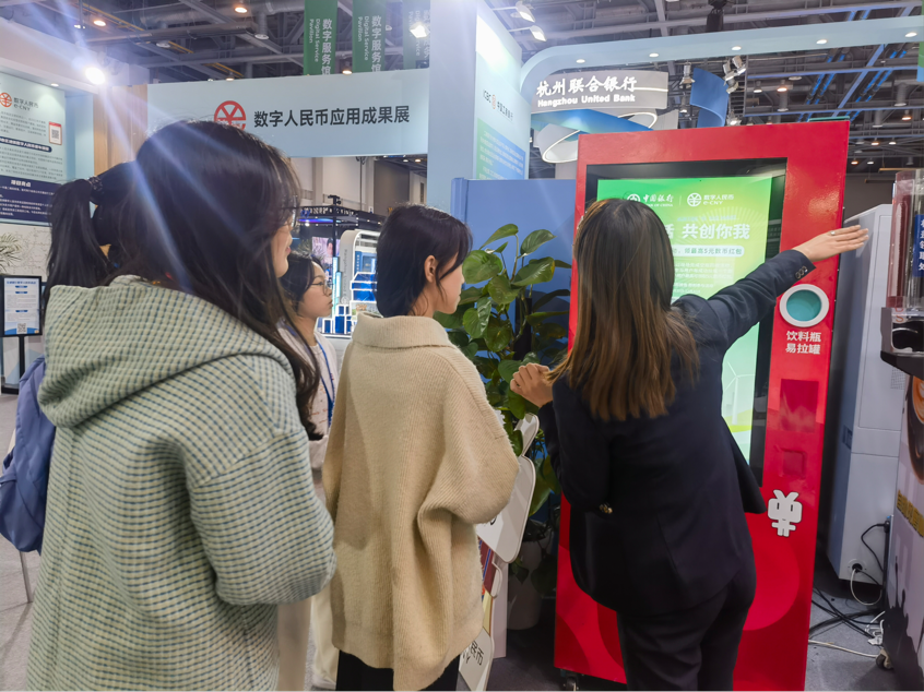 志愿者们自由分配参观杭州展览会各展区。积极实践如何使用数字人民币进行购物以及将空壳的瓶子通过机器兑换数字人民币,通过实操,感受数字人民币带来的便利。同时,自由观摩展会观赏展示的产品及创作,对感兴趣的产品进行咨询、调查。