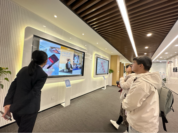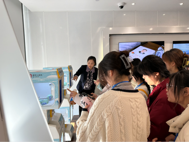 中国银行讲解员带着志愿者们来到数字人民币实验室,向同学们介绍数币基础金融知识,同时观看了数字人民币的介绍视频。
