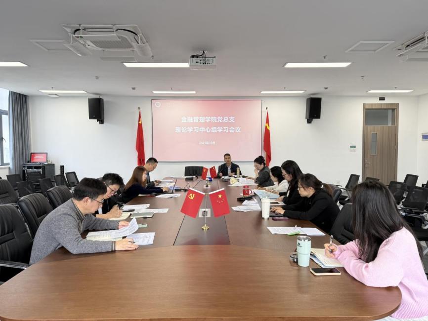 2025年10月22日下午,金融管理学院党总支理论学习中心组在泰隆大厦718会议室召开学习会议。学院党总支书记钱利安、副院长凌海波、党总支副书记林艳琼出席会议并分别领学,理论学习中心组成员、组织员等参加会议。学习会由钱利安书记主持。
