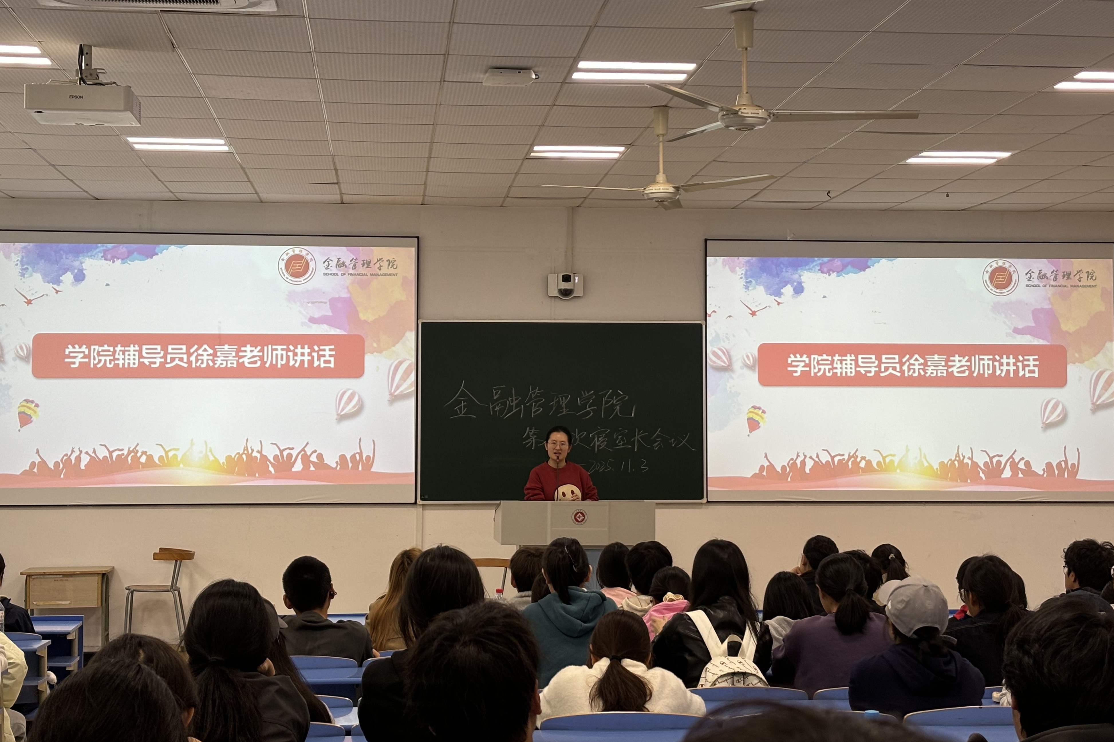 为加强寝室管理,优化同学们的生活与学习环境,11月3日至4日,金融管理学院在8119教室召开全体寝室长会议。会议由学院辅导员徐嘉老师主讲。