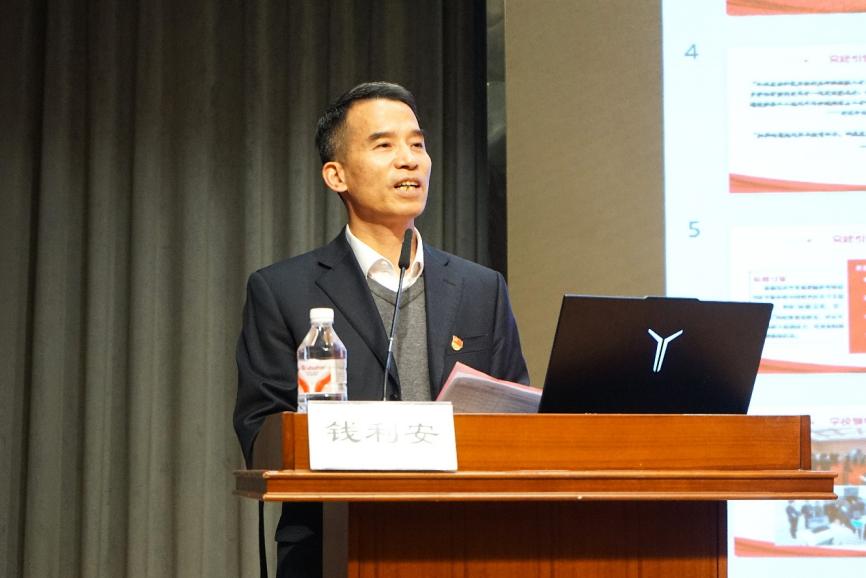 钱利安教授进行了《以“五维”育人培育新时代金融高技能人才》的主题分享,从思想育人、课程育人、朋辈育人、比赛育人以及文化育人五个维度系统回顾学院高水平专业群在培育金融工匠精神方面的实践举措和成效,并强调了培养高技能人才与大国工匠的战略意义,通过历届国赛成绩回顾激励在场学子以优秀前辈为榜样,希望广大学子积极践行和大力弘扬工匠精神,续写辉煌。