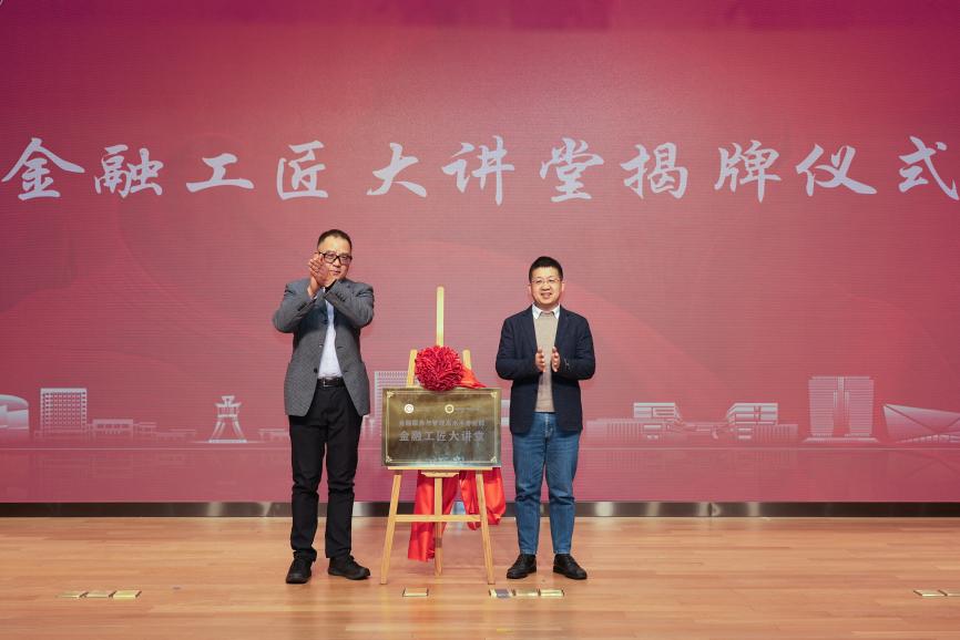 蒋岳祥教授(左)与吴金旺教授(右)共同为“金融工匠大讲堂”揭牌