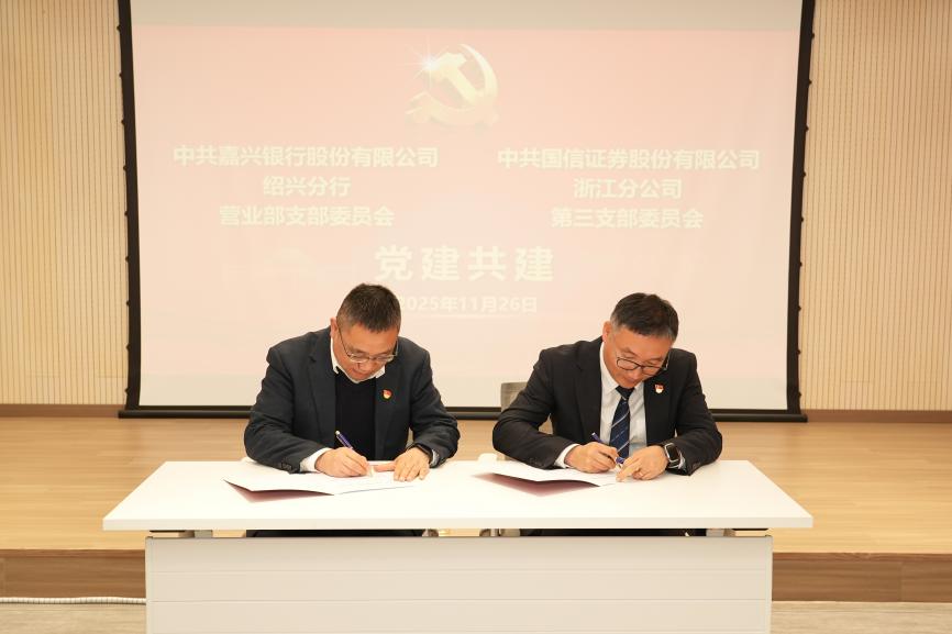 交流会上,中共嘉兴银行股份有限公司绍兴分行营业部支部委员会与中共国信证券股份有限公司浙江分公司第三支部委员会签署党建共建协议。