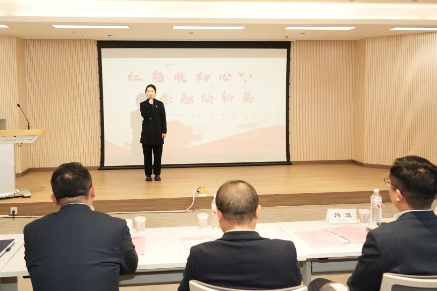 会上,嘉兴银行绍兴分行青年员工代表以《红船映初心 金融绘新篇》为主题,开展企业文化宣讲,充分展现分行的文化内核与青年风貌。