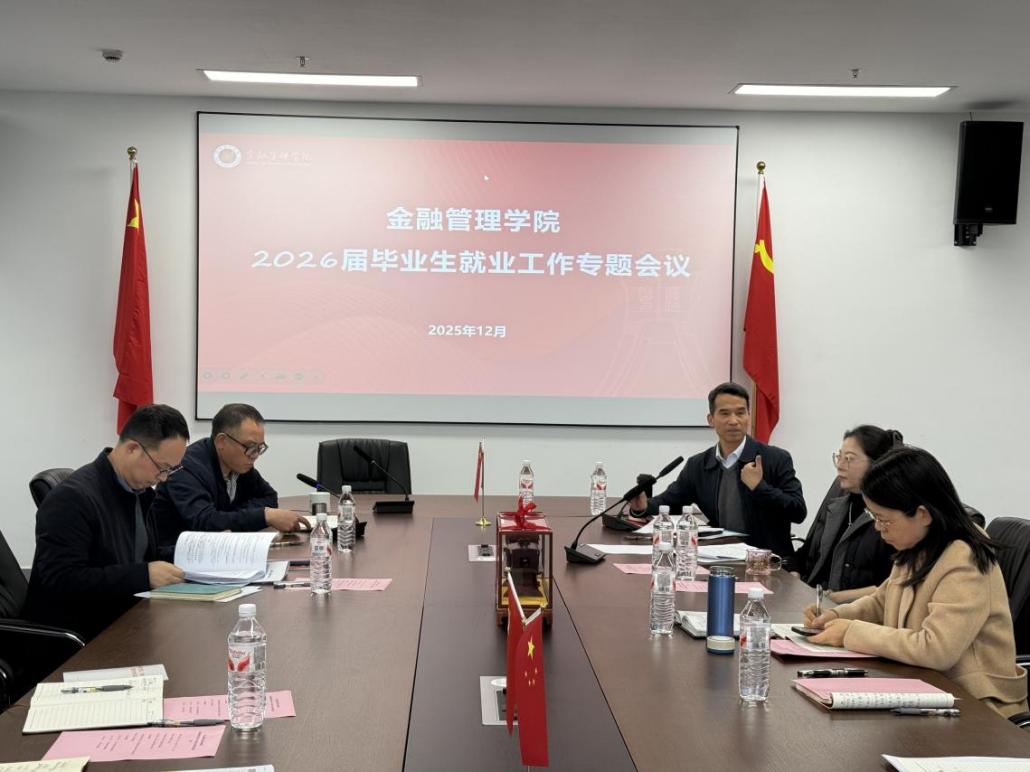为扎实推进2026届毕业生更高质量、更充分就业,12月10日下午,金融管理学院于泰隆大厦718会议室,召开2026届毕业生就业工作专题会议,分析当前就业形势,部署下一阶段重点任务。学院领导班子、毕业班班主任、就业工作辅导员及相关教师参加会议。会议由学院党总支书记钱利安主持。