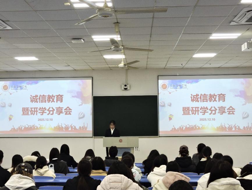 为强化学生诚信意识,规范资助资金使用,引导学生树立正确的价值观与消费观,我院于12月10日在8119教室召开诚信教育暨研学分享会。本次分享会由学院资助服务部指导老师、学院辅导员程丽主讲,农商学徒241班的陈怡菲主持,学院各班资助对象代表参会。