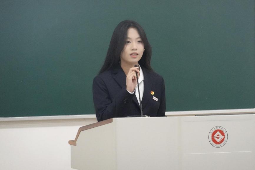 国家励志奖学金获得者农金243吴雅雯结合自身经历分享成长感悟,她鼓励同学们心怀感恩、坚定目标、脚踏实地,在学习和实践中传承革命精神、红色基因,以诚信立身,以努力成事,立志成长为新时代有担当的青年。