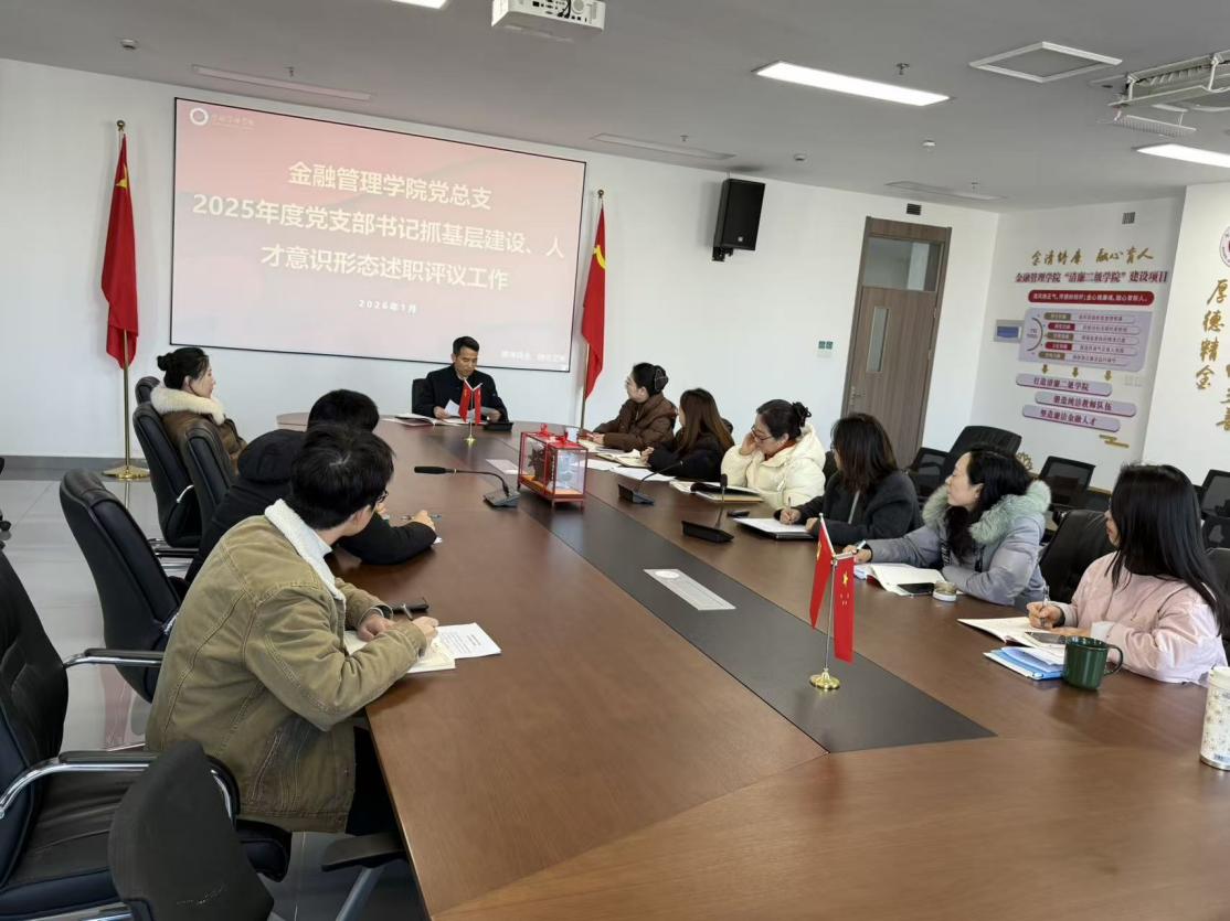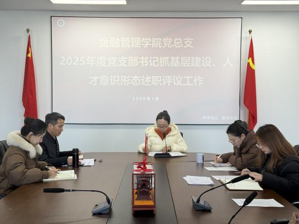 2026年1月7日,金融管理学院在泰隆718会议室召开了2025年度党支部书记述职评议工作会议。此次会议旨在深入贯彻落实习近平新时代中国特色社会主义思想和党的二十大和历次全会精神,进一步推动学院党支部建设,提升党支部的凝聚力和战斗力。学院党总支书记钱利安,党总支副书记林艳琼,学院学术副院长霍东星,党总支组织委员黄溯,党总支组织员彭采婧,全体党支部书记参加会议,会议由钱利安主持。